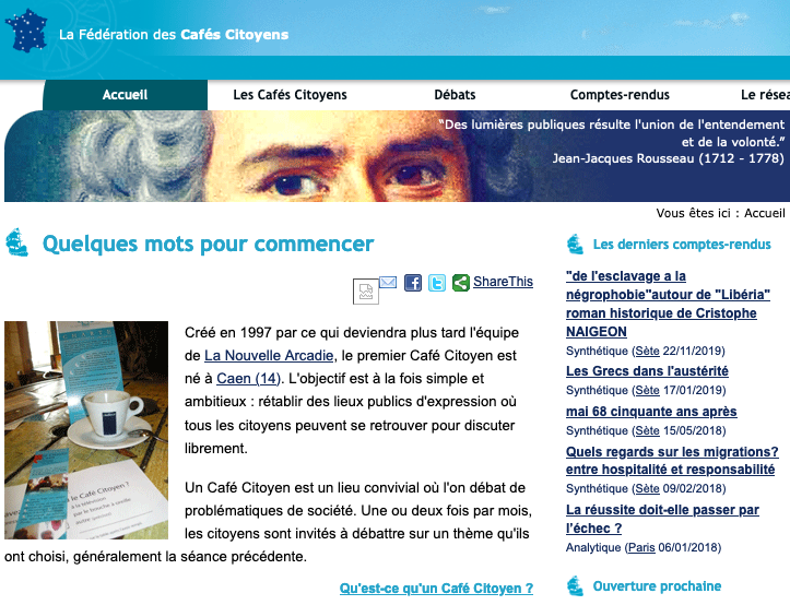 J’ai 48 ans et depuis que j’ai découvert l’importance du débat avec les cafés citoyens en janvier 2002, les évènements ont confirmé mon intérêt. Une partie des solutions se trouvaient dans notre capacité à discuter et à se rassembler.